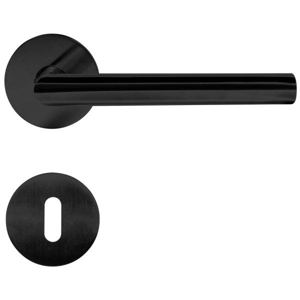 Dørhåndtak 16 mm V håndtaksdesign – mattsvart. Med klikkrosett og en tykkelse på bare 4 mm for elegant design