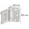 Mål hengsel: L40 x H65 mm. Mål plastdel: L40 x H55 mm. 2 stk. per pose inkludert skruer Justerbart +/- 3 mm. Materiale: Pulverlakkert hvit.