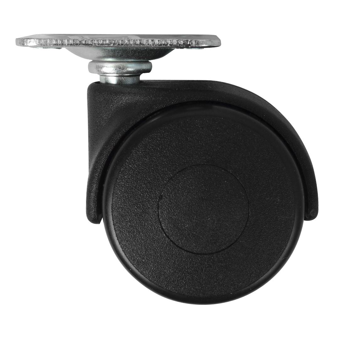 HOME It® dreibart dobbelt møbelhjul Ø40 mm svart plast er et praktisk hjul for møbler som skal kunne flyttes enkelt. Den dreibare monteringsrammen gir god manøvrering, og den doble hjulkonstruksjonen gir stabil rulling ved bruk på møbler. Hjulet leveres uten brems og er laget i metall og plast.