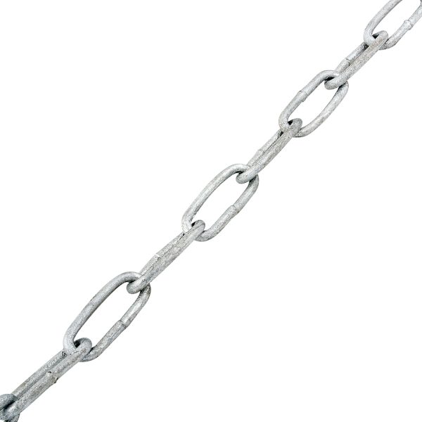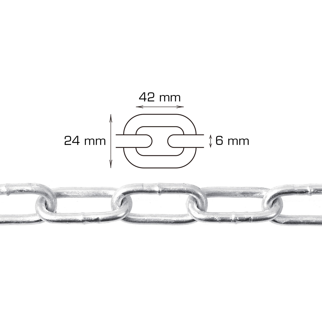 Galvanisert langleddet kjede 5 meter ћ 6 mm. DIN 5685-C Belastning: 765 kg.