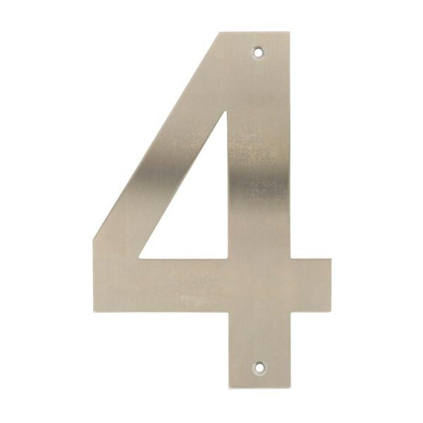 Home it husnummer 4 i rustfritt stål er et solid og tidløst valg for adressemerking. Den glatte overflaten gjør tallet enkelt å holde rent, og designet passer til de fleste boligtyper.