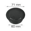 Innvendig mål: 60 mm. Utvendig mål: 71 mm. Høyde fra underkant: 20,8 mm. Materiale: Plast.