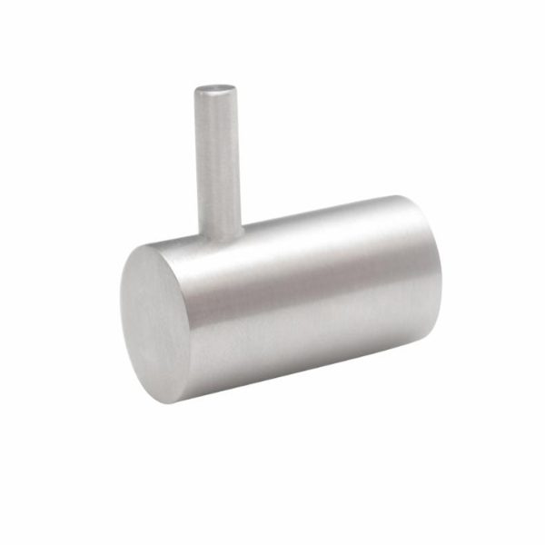 Rund med 1 knagg med tapp. Rustfritt stål – SS304. Mål: ?16 mm x 35 mm. Skjult montering for elegant utseende. Inkl. skruer og plugger til montering.