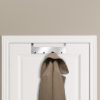 Knaggrekke med 4 knagger til å henge over dør. Rustfritt stål. Høyde: 114 mm. Bredde: 320 mm. Dybde: 44 mm. Helt uten boring i vegger mm. Ideell knagg hvis man ikke vil bore hull i veggene.