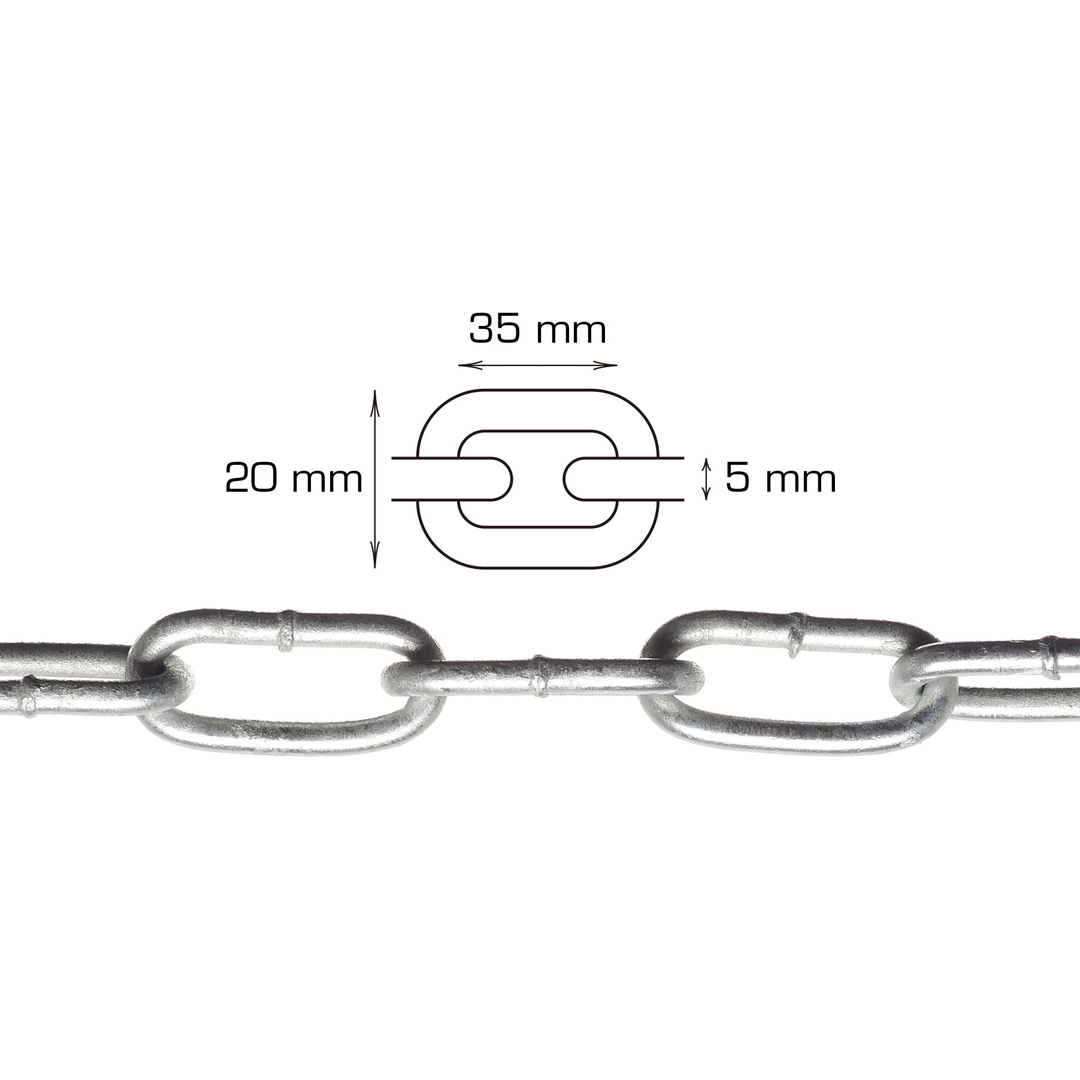 Sveiset langleddet kjede 2 meter ? 5 mm. DIN 5685-C Belastning: 765 kg.
