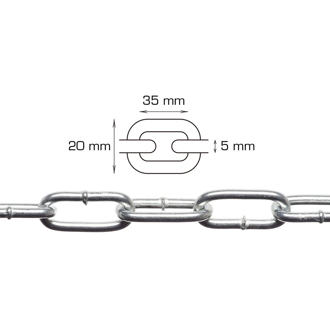 Sveiset langleddet kjede 5 meter ћ 5 mm. DIN 5685-C Belastning: 765 kg.
