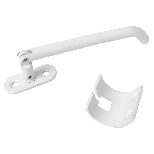 Vindussikringsbeslag universalt el forsinket/gulkromat/hvit. Sikringsbeslag til vinduer og dører. Sikringsbeslaget monteres omtrent midt på karmen og kan monteres både på topphengte og sidehengte vinduer. Beslaget er universalt både til høyre og venstremontering. Beslaget leveres med monterings mal og enveisskruer.