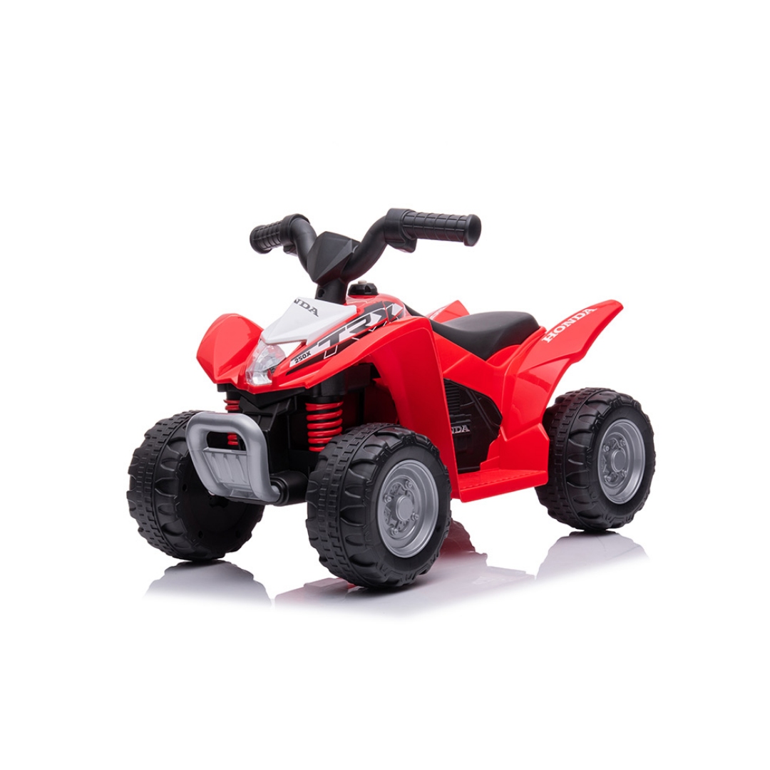 Elektrisk ATV for små førere med frontlys, horn og stabil sitteposisjon. Enkel betjening gjør den lett å bruke ute på jevnt underlag. En god inngang til motorisert lek med tydelige rammer og moderat toppfart.