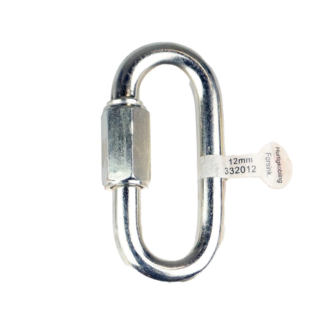 Materiale: Forsinket stĂĽl HurtigkoblingGodstykkelse: 12mmInnvendig Lengde: 80,5mmInnvendig Bredde: 23,5 mmMax ĂĽpning lĂĽs: 15mmArbeidslast kg: 1875Bruddstyrke kg: 7500