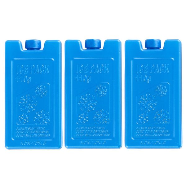 Tre små kjøleelementer som holder maten kald i kjølebag, piknikkurv eller matboks. Fylte med destillert vann og egnet for gjenbruk.