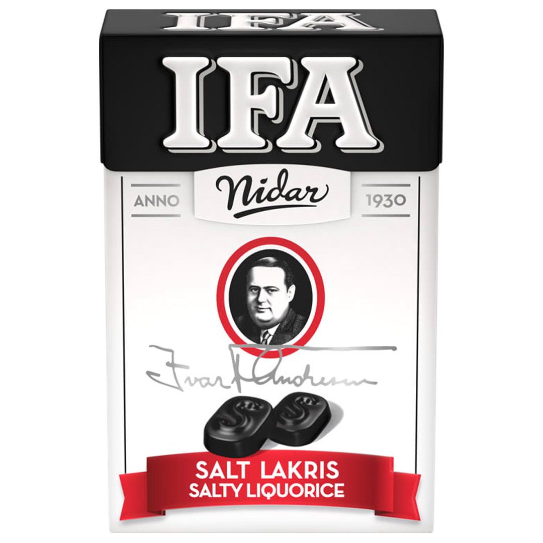 Ingredienser: Sukker, geleringsmiddel (gummi arabicum), vann, lakrisekstrakt, ammoniumklorid, salt, syre (sitronsyre), overflatebehandlingsmidler (bivoks, kokosolje, karnaubavoks) og fargestoff (E153). Informasjonen er levert av leverandør og produsent. Vi tar forbehold om avvik. Om du har behov for garanti må du sjekke forpakning eller kontakte produsent.