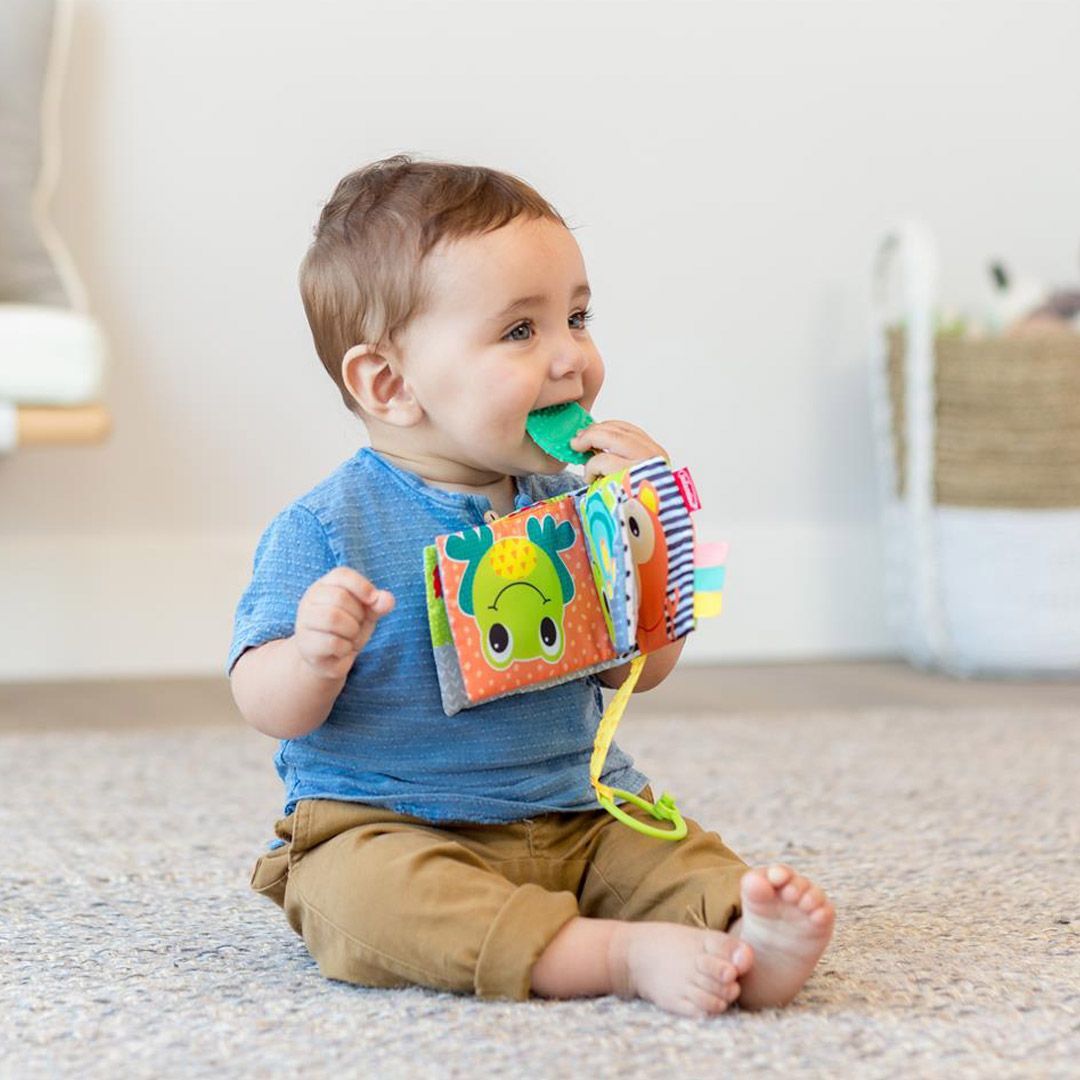 Morsom myk bok med lyd og flotte fargerike bilder, i tillegg til biteleke.
