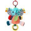 Denne søte elefantranglen gir barnet muligheten til å utforske lyder, teksturer og bevegelser. Elefanten har en liten ring med kuler som lager lyd, ben og ører som knitrer ved berøring, og en musikalsk rangle i magen. Den har også en bitering i snabelen for lindring av tannkløe. Ranglen kan enkelt festes til barnevogn eller babyseng, og stimulerer både sanser og motoriske ferdigheter.
