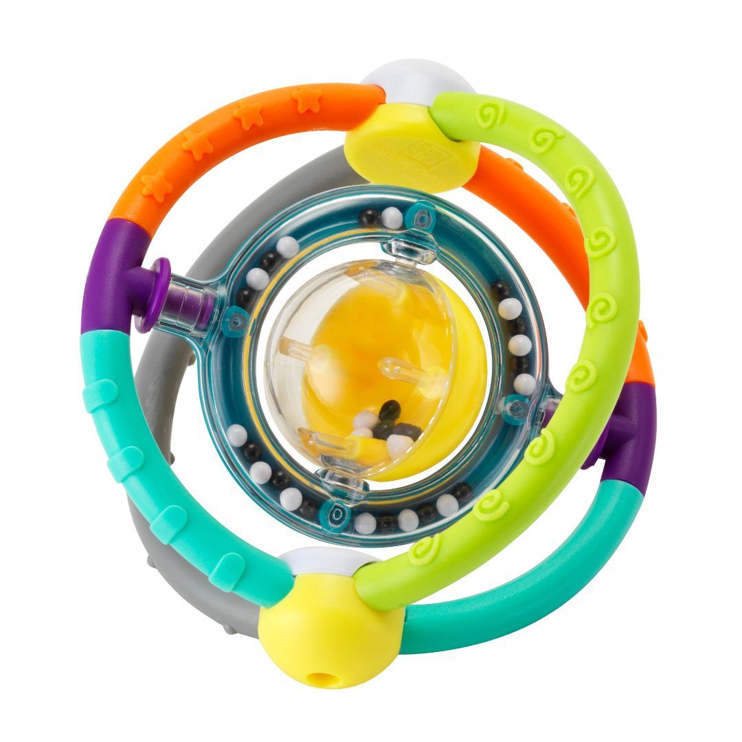 Denne fargerike orbit-ranglen er en morsom og unik leke for småbarn. Den kan brettes sammen som en ball og er lett for små hender å gripe og utforske. Ranglen gir barnet muligheten til å utvikle finmotorikk og oppdage ulike teksturer og bevegelser gjennom lek.