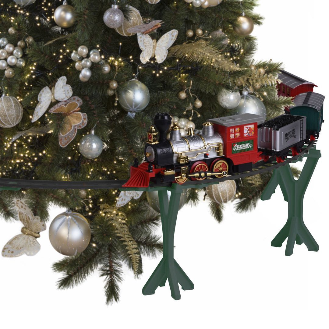 Juletog sett dia 90 cm er en sjarmerende dekorasjon som skaper magi under juletreet. Dette toget er designet for å kjøre rundt en sirkel på 90 cm og gir en nostalgisk følelse til julefeiringen.