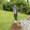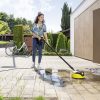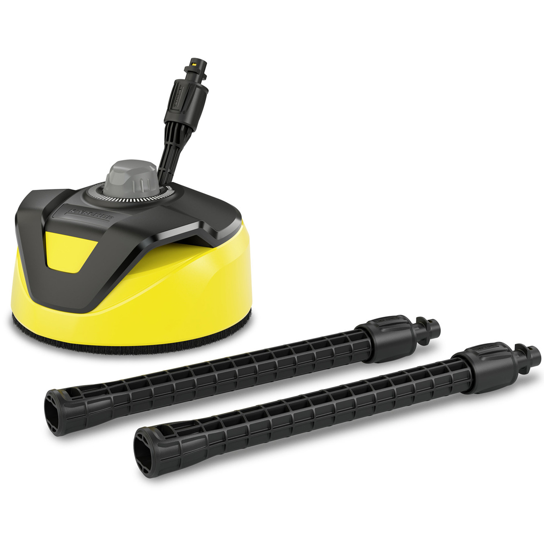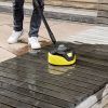 Terrassevaskeren T 5 gir effektiv, sprutfri rengjøring av store flater som terrasse, oppkjørsel, platting o.l. Enkel trykkjustering sørger for effektiv vask av ulike underlag. To roterende flatstråledyser_x000D_