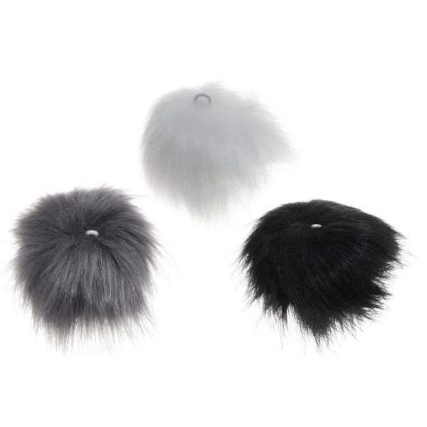 - Pomponger ca. 11 cm i svart, grå og hvit