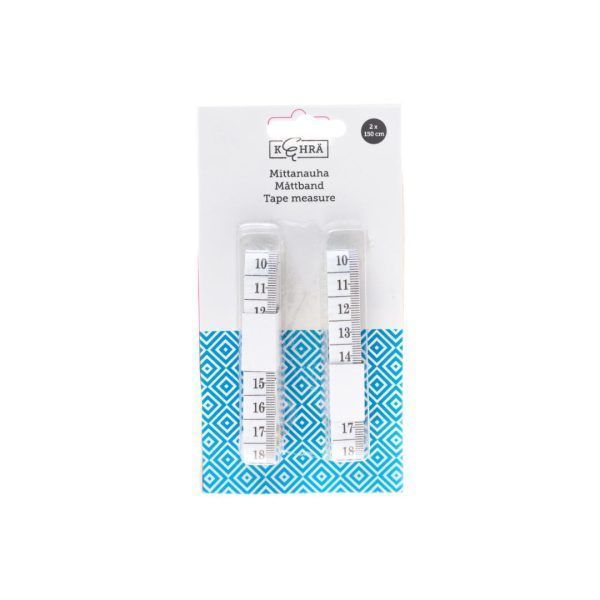 Pakken inkluderer to målebånd, lengde 150 cm.
