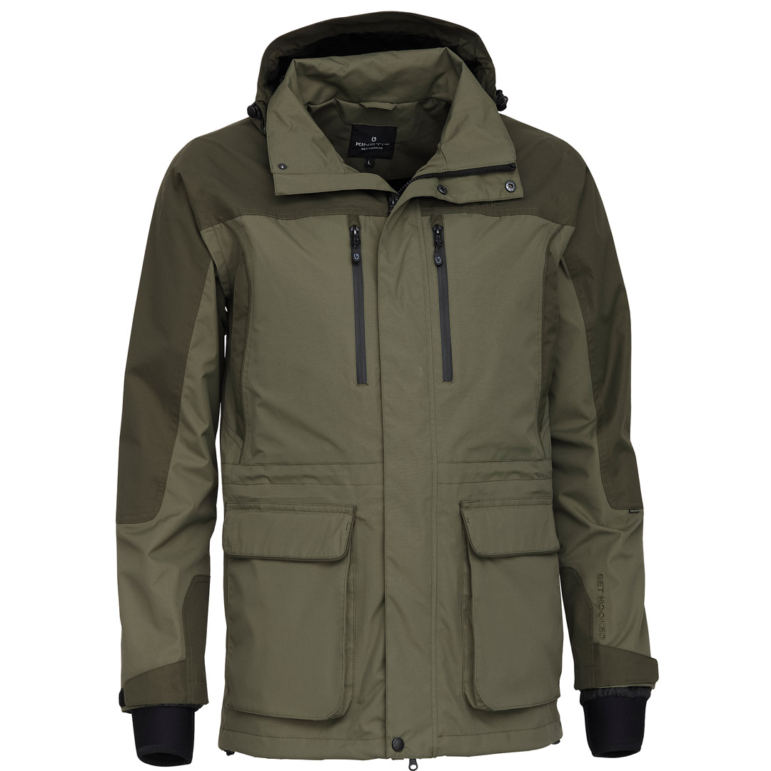 Kinetic Forest Jacket er en praktisk friluftsjakke utstyrt med vind- og vanntett PROxTEX-membran med herlig komfort og effektive pusteegenskaper (Vanntetthet 8000 mm) (Pusteevne 3000mvp). Laget av slitesterk Taslan 320D Nylon, med et beskyttende PU-belegg. PROxTEX-membranen er laminert med 210T polyester og har et mesh innlegg for høy luftsirkulasjon og termisk isolasjon. Alle sømmer er tapede. Jakken har ni praktiske lommer og justerbart midjeparti. Mansjetter av neoprene med borrelåsjustering. Avtakbar hette.