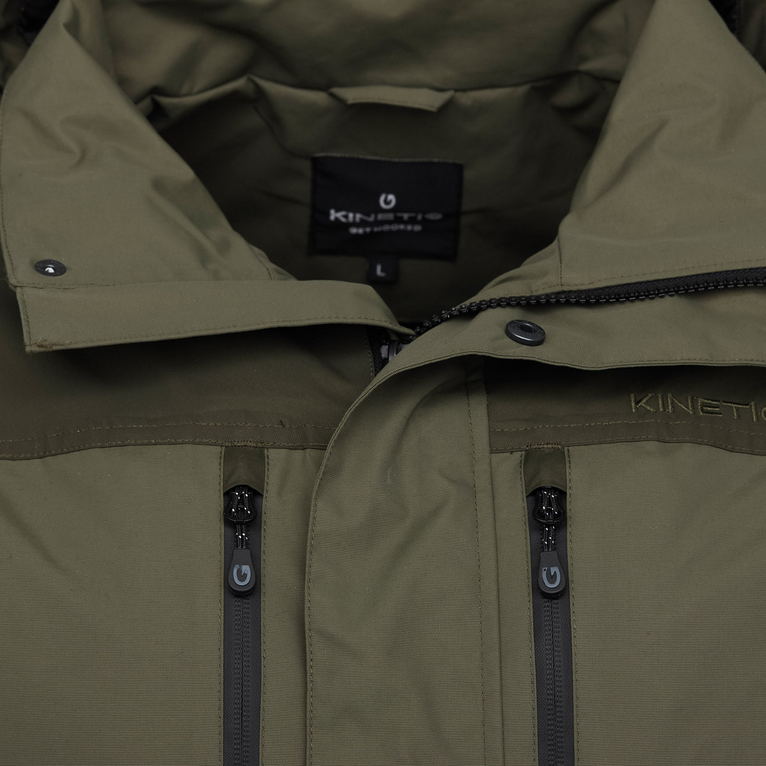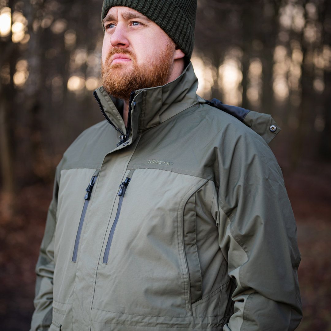 Kinetic Forest Jacket er en praktisk friluftsjakke utstyrt med vind- og vanntett PROxTEX-membran med herlig komfort og effektive pusteegenskaper (Vanntetthet 8000 mm) (Pusteevne 3000mvp). Laget av slitesterk Taslan 320D Nylon, med et beskyttende PU-belegg. PROxTEX-membranen er laminert med 210T polyester og har et mesh innlegg for høy luftsirkulasjon og termisk isolasjon. Alle sømmer er tapede. Jakken har ni praktiske lommer og justerbart midjeparti. Mansjetter av neoprene med borrelåsjustering. Avtakbar hette.