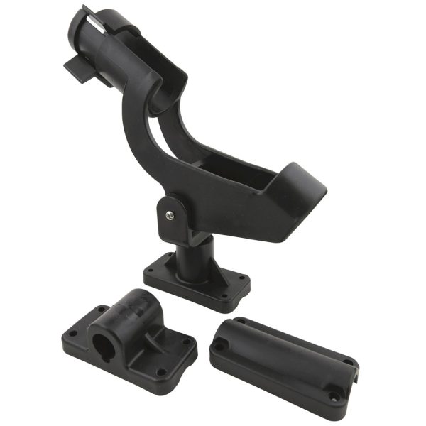 Denne stangholderen tillater alle typer stenger og sneller med sitt lukkede svingsystem. Den vertikale svivelen gjør at man enkelt kan posisjonere stangen sin enkel under trolling. Inkluderer skinne og side/dekk feste.