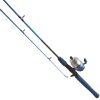 Kinetic RAMASJANG blue fiskestang. En ypperlig stangkombinasjon til kommende storfiskere. Dette lukkede haspelsettet er tilpasset barn, og kommer med spesialdesignet topp for mindre floker. Den solide glassfiberklingen er perfekt til unge fiskere, og er laget for å være holdbar. Stanga har middels kraft og et behagelig og tøft håndtak av EVA og sikrer et godt grep. Snellen i dette settet er av den lukkede typen, har en jevn og justerbar brems og tillater at barna setter mer press på kjempende fisk. Leveres med ferdig påspolt fiskesene, og best av alt – den blinker under innsveiving!