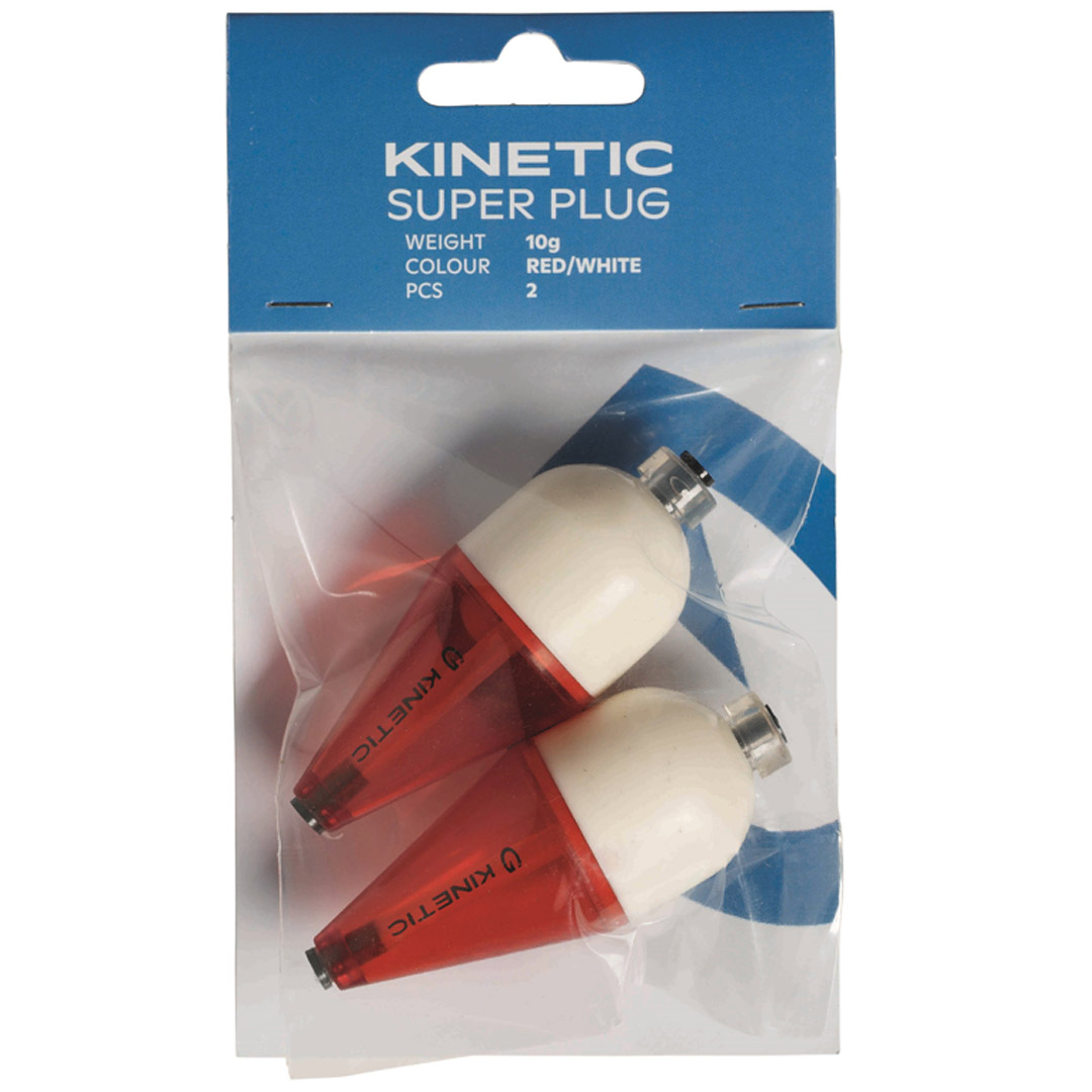 Kinetic super plug 5 gram rød/hvit. En klassiker til markfiske i ferskvann. Denne duppen er veldig enkel å justere og fungerer ypperlig. Kan fylles med vann for økt kastelengde, eller for å få den til å synke. Gummituben låser linen.