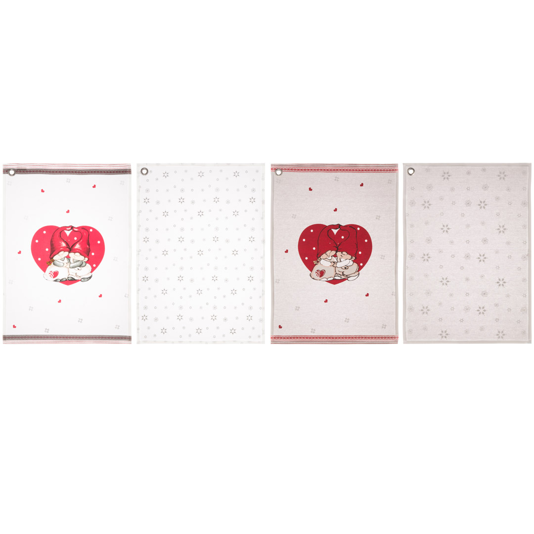 Kjøkkenhåndkle med julemotiv, snøkrustaller eller nisser. St ørrelse:50 x 70 cm. 100% bomull. Priset pr stk.