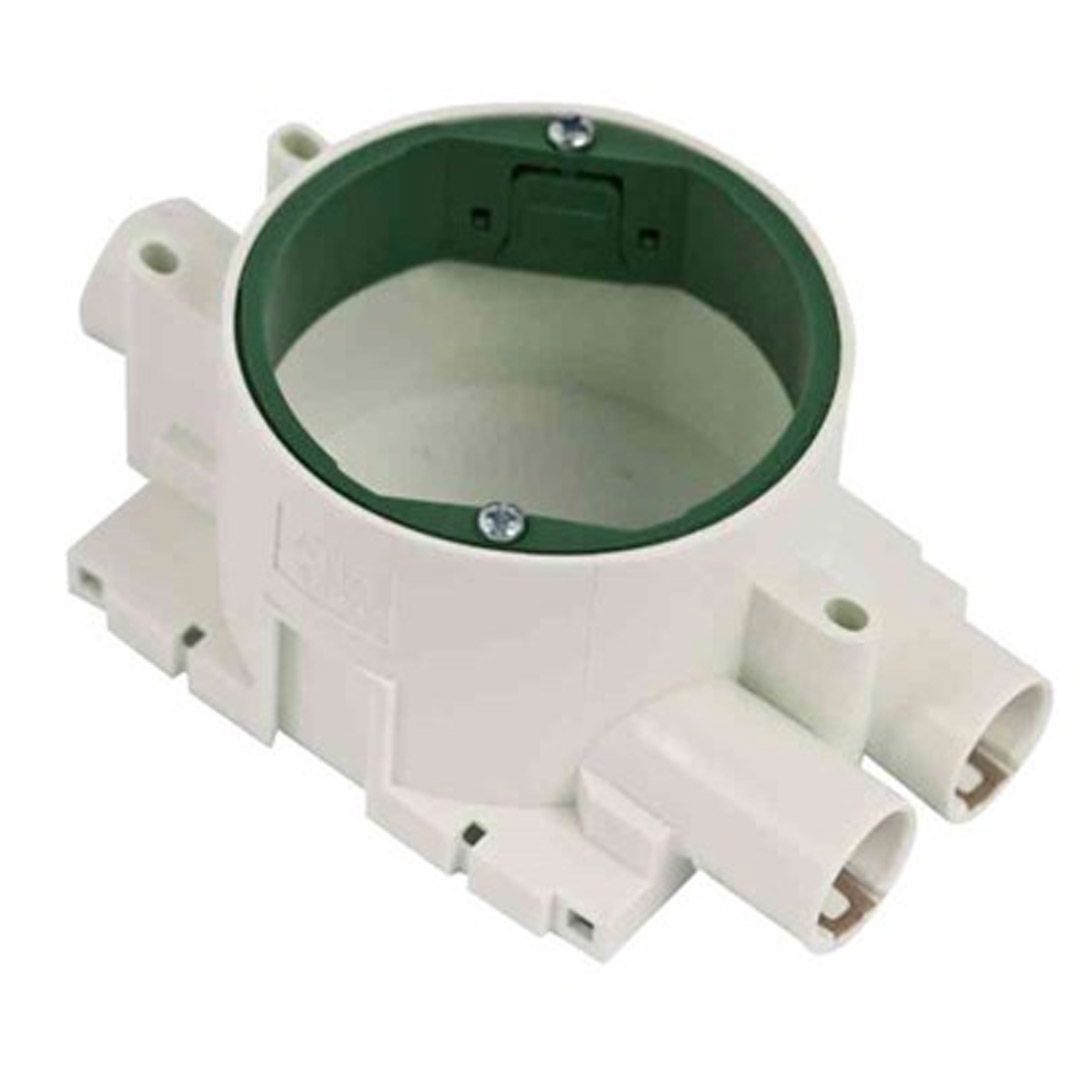 For montering av strømbryter og vegguttak. 3 stk koblinger med låsefjærer som gjør at rør og slanger sitter godt fast. Justerbar festing av apparatene. Boksen er sammenkoblingsbar.