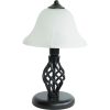 Kristin bordlampe med alabaster glass skjerm. Høyde: 32 cm Diameter: 17,5 cm Materiale: Metall og glass. Lyskilde: Medfølger ikke. Lysregulering: Bryter på ledningen. Maks 42 Watt. Sokkel: E14. Klasse:KL. 2. Spenning: 230 Volt. IP klasse: IP20. CE-merket.