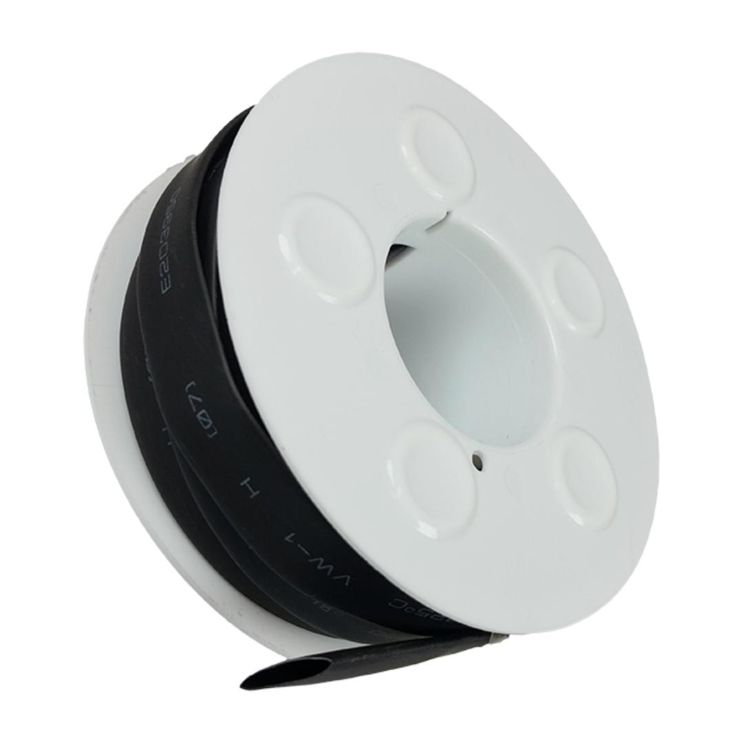 Smart krympestrømpe på rull som enkelt kan klippes til ønske t lengde. Forpakning kan også henges og brukes som dispenser . Beskytter og isolererkomponenter og ledninger. Krympetemp eratur: 70-110 grader. Krymperatio:02:01