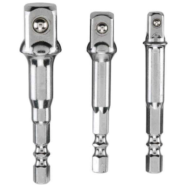 Adaptersett til piper 3 stk., kromvanadiumstål, forkrommet høyglans, til alle standard pipenøkler med 1/4?, 3/8?, 1/2?, 1/4? sekskantfeste iht, ISO 1173, E 6.3.