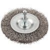 Hjulbørste, HSS ståltråd, korrugert, for rustfjerning, rengjøring, maling, kjelstein, avleiringer og kanter, til metall og stein, perfekt for arbeid på smale kanter, rammer, karmer, rister og rør.
