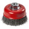 Koppbørste, HSS-ståltråd, korrugert, til rustfjerning, rengjøring, fjerning av belegg og maling, rengjøring av forskaling og fasader, avskalling, avgrading, skrubbing og mattering, til metall og stein, perfekt for arbeid med middels store til store områder.