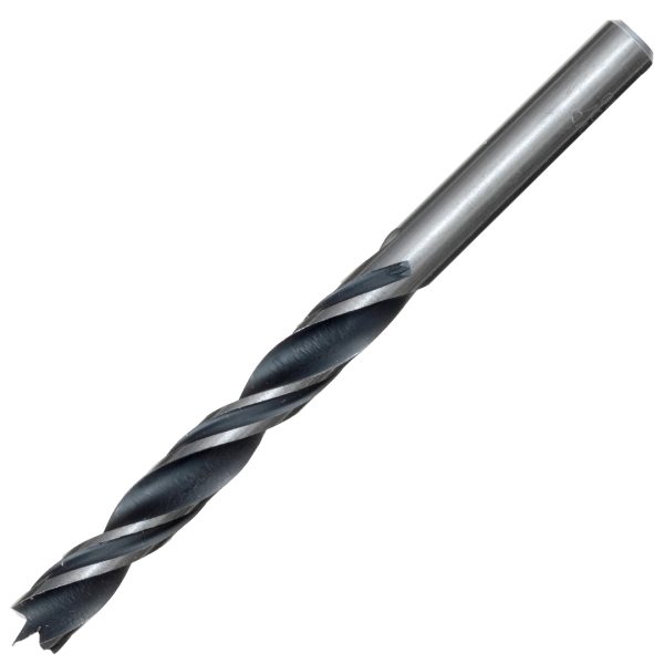 Spiralbor til tre, nøyaktig formet, 2-fase-spiraler for konsentrisk drift, kjemisk svart, slipte spiraler med senterspiss og skulderskjær, for nøyaktige og splintfrie hull, rundt skaft, industrikvalitet, til mykt og hardt tre.