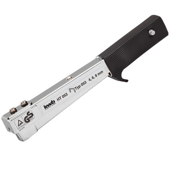 Håndtag med fingerbeskyttelse. Magasin til op til 200 klammer. Klamme type 053. Klammestørrelser: 4-8 mm.