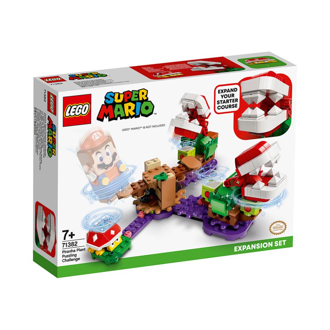 Barn kan utvide LEGO Super Mario universet sitt med ekstrabanen Vrien utfordring med Piranha Plant (71382) og få enda mere moro med venner eller når de spiller alene. Ekstrabanesettet inneholder to pirajaplanter og en figur av Spiny som LEGO Mario (figuren følger ikke med) må beseire, samt en karusell du kan snurre for å velte pirajaplantene så du får tilgang til de tre klossene med røde mynter. Hopp på dem for å få store mengder digitale mynter! (Merk: Du må ha 71360 startbanesettet for å kunne spille interaktivt.)