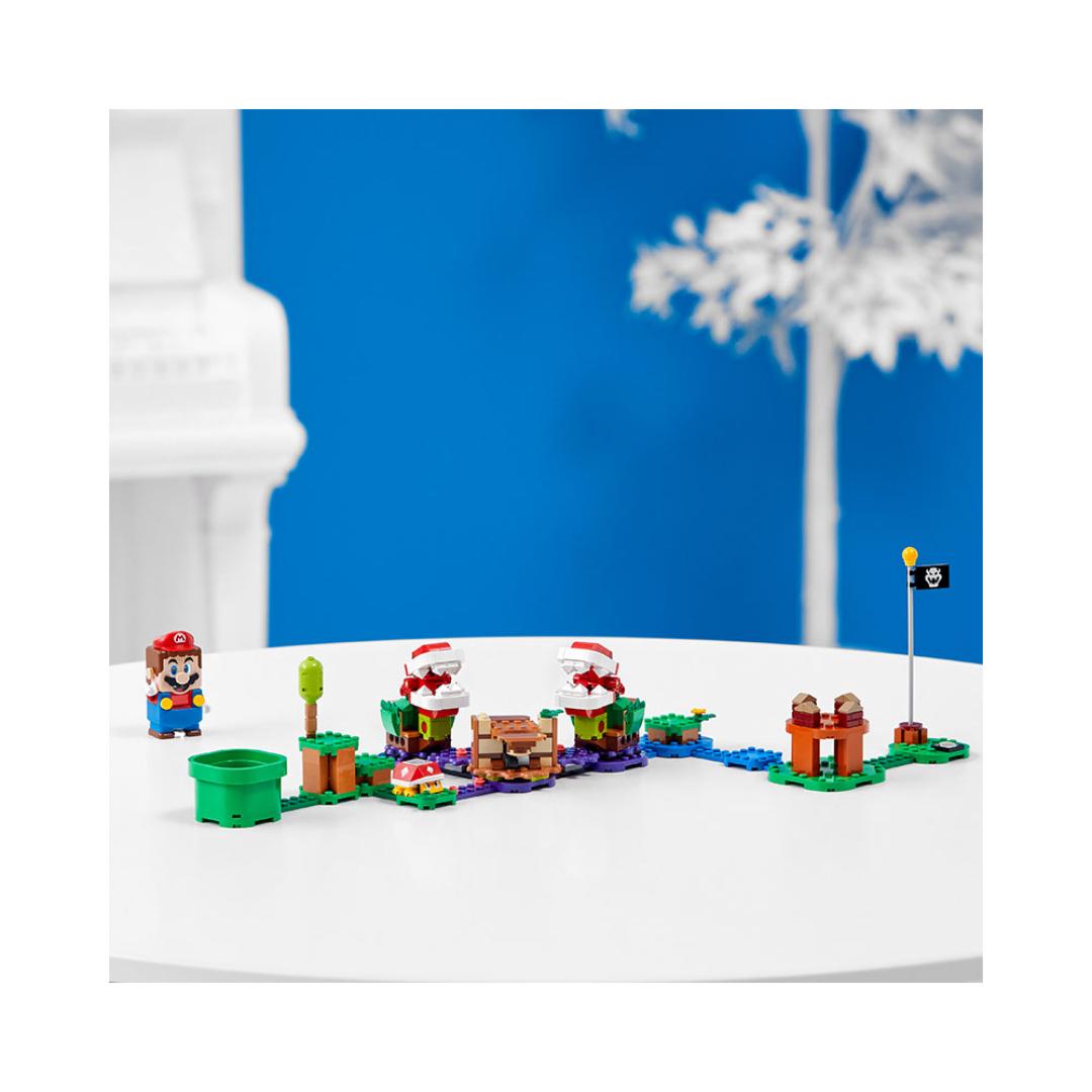 Inkluderer LEGO lekefigurer av ikoniske Super Mario fiender – to Piranha Plant-planter og en Spiny – som LEGO Mario (figuren følger ikke med) må beseire.