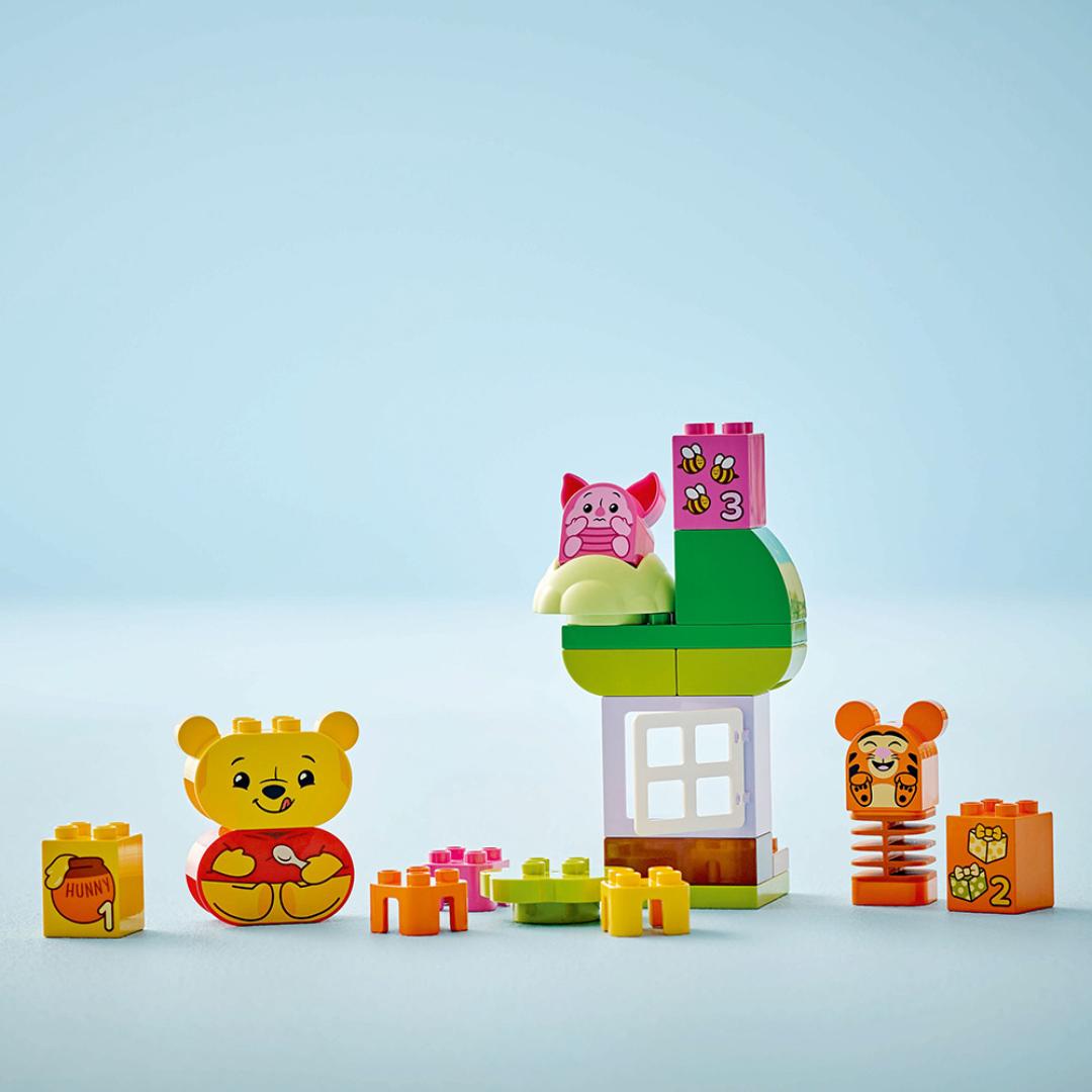 LEGO DUPLO 10457 Disney Ole Brumms bursdagsfest gir en varm og enkel ramme for festlek med Ole Brumm, Tigergutt og Nasse Nøff. Figurene har to ansiktsuttrykk hver, slik at barna kan utforske følelser som glede, spenning og trøtthet etter litt for mye honning.