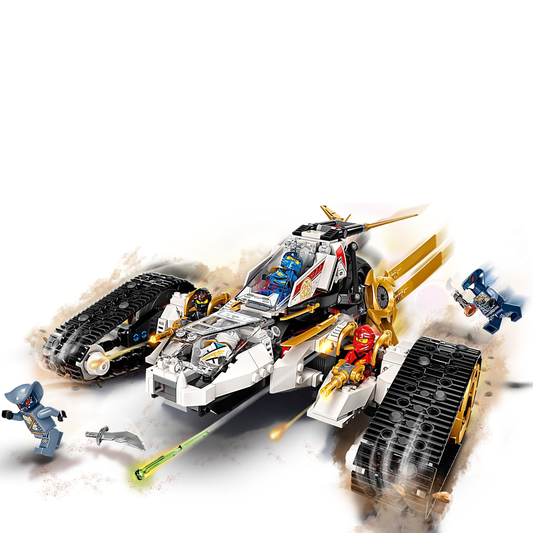 Med denne oppdaterte versjonen av Ultrasonisk angrepskjøretøy (71739) kan barna iscenesette spennende eventyr fra den første sesongen av LEGO NINJAGO TV-serien. Dette 4-i-1-kjøretøyet kan demonteres og bygges om til en motorsykkel-leke, et jetfly med fjærbelastede skytere og to terrengkjøretøy.