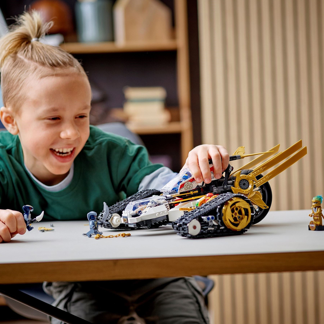 LEGO NINJAGO Ultrasonisk angrepskjøretøy (71739) er et unikt 4-i-1-kjøretøy som kan demonteres til et jetfly, en motorsykkel-leke og to terrengkjøretøy for enda mer morsom lek.