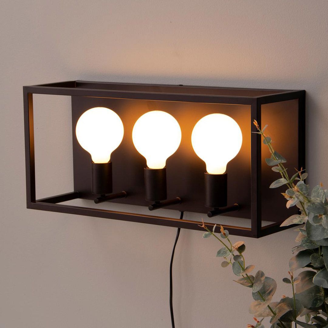Lisboa vegglampe trippel i sort farge med detaljer i messing