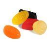 ALERGENER:HveteINGREDIENSER:glykosesirup, sukker, vann, hvetestivelse, gelatin, modifisert potetstivelse, syrer (E270, E296, sitronsyre), aromaer, fargestoffer (E100, E153, E160c), konsentrat av juice fra svart gulrot, vegetabilsk olje (kokos), overflatebehandlingsmiddel (karnaubavoks), konsentrat fra (spirulina, saflor).