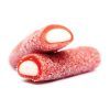 Ingredienser: Sukker, glukosesirup, invertsukker, sirup, HVETEmel, maisstivelse, palmefett, fuktighetsbevarende (glyserol), syreregulator (eplesyre, sitronsyre, vinsyre), potetstivelse, gelatin, emulgator (glyserolmonostearat), aroma, grønnsakskonsentrat (solbær, gulrot), fargestoff (E120).