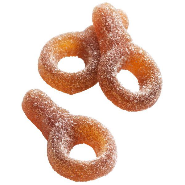 Ingredienser: Glukosesirup, sukker, gelatin, glukose, syre (sitronsyre, eplesyre), syreregulator (kalsiumsitrat, natriummalat), aroma, overflatebehandling (karnaubavoks).