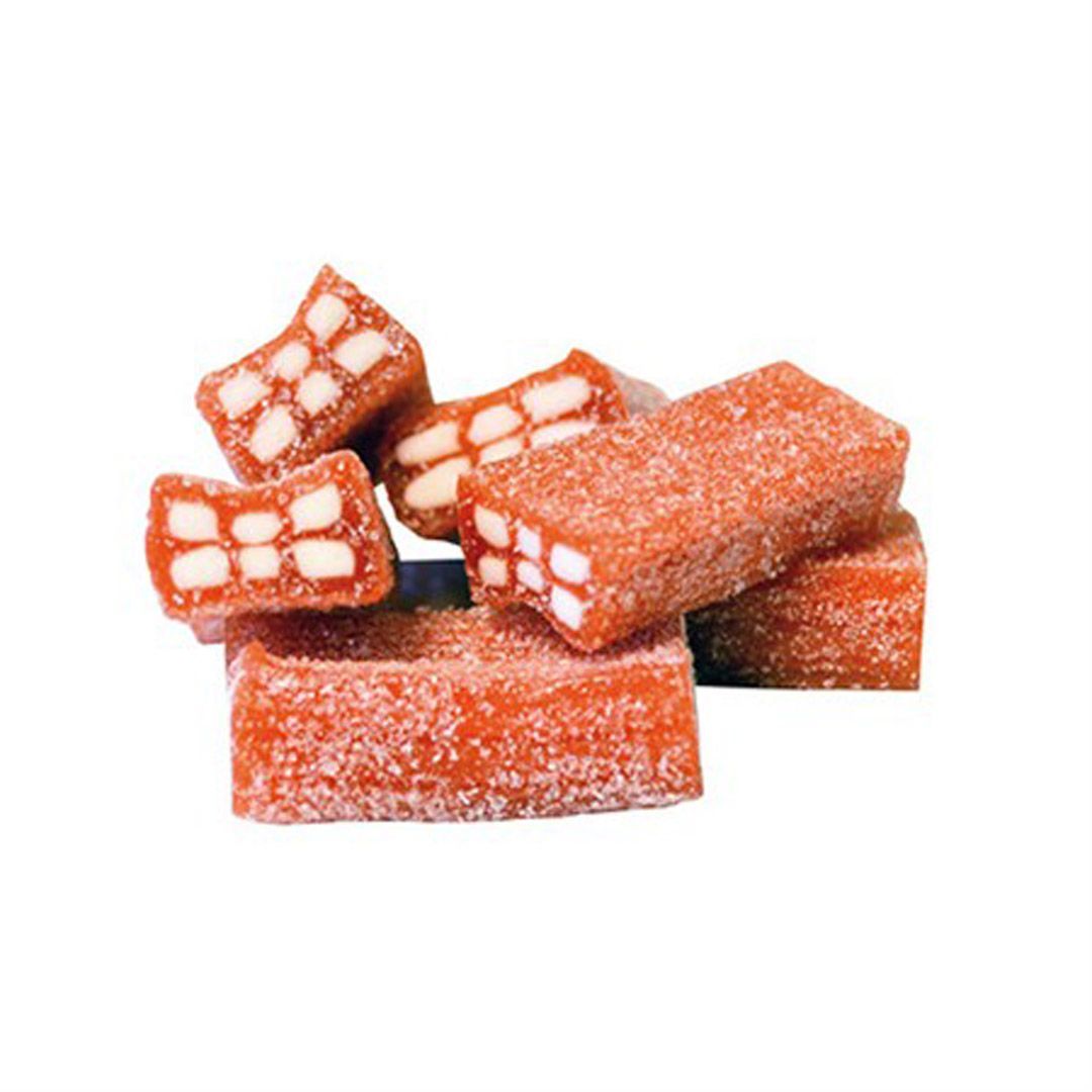 Ingredienser: Sukker, glukose-fruktosesirup, maisstivelse, vann, HVETEmel, gluten, dekstrose, fuktighetsbevarende (E420), syre (E330, E296), gelatin, vegetabilsk fett, syreregulator (E331), emulgator (E471), aroma, fargestoff (E120).