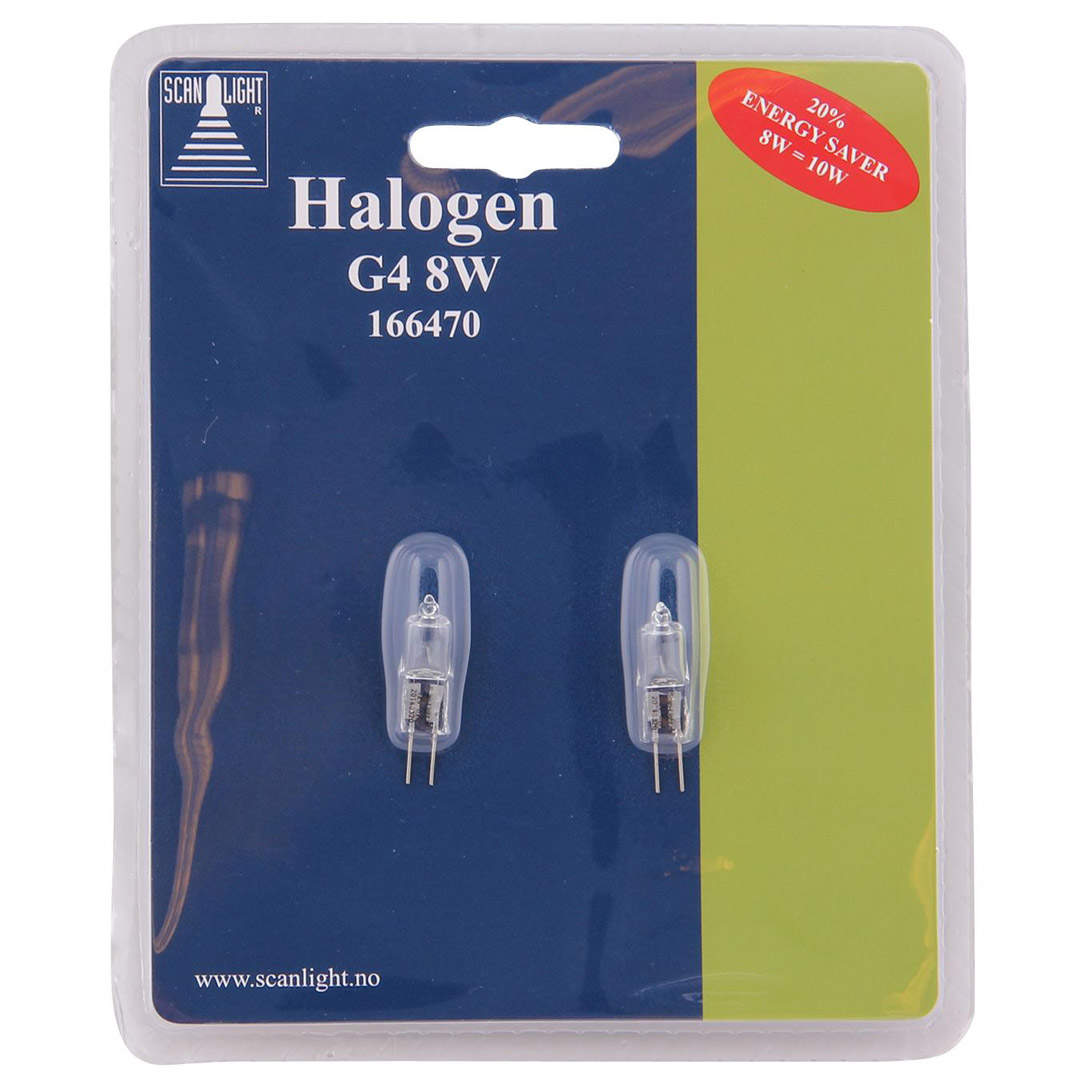 Lyspære g4 halogen 8w (10w) klar 2-pk