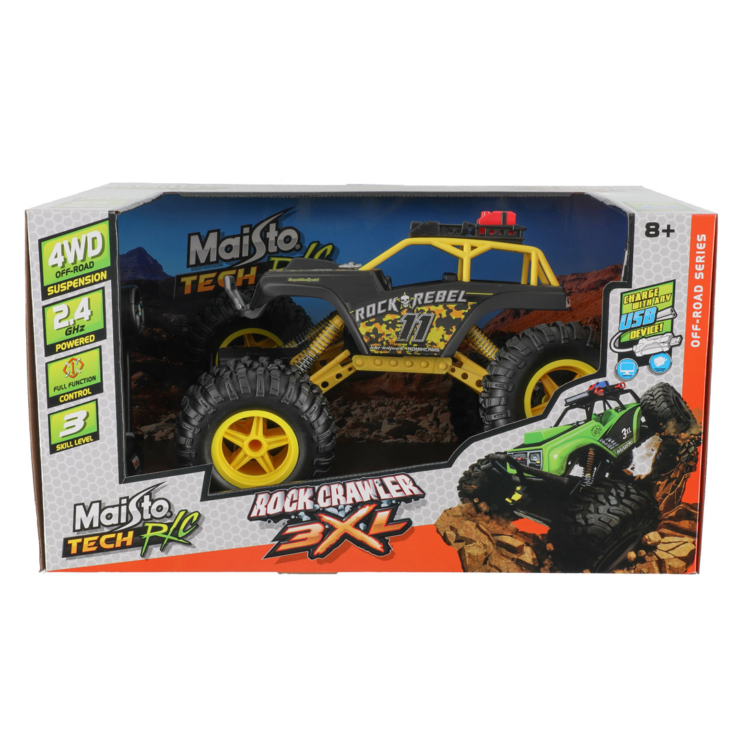 Ta terrengkjøring til neste nivå med Maisto Tech R/C Rock Crawler. Denne 38 cm lange fjernstyrte bilen er utstyrt med 2,4 GHz teknologi for presis kontroll og har en robust konstruksjon som takler utfordrende terreng. Perfekt for bilentusiaster fra 8 år og oppover.