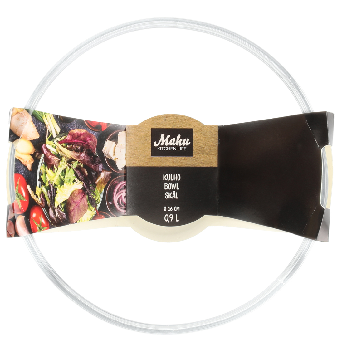 Glassbolle fra Maku. Dimensjoner: 16 cm. Volum: 0,9 liter Temperaturer:-50 til +500 grader. Oppvask, ovn, micro og fryse sikker.