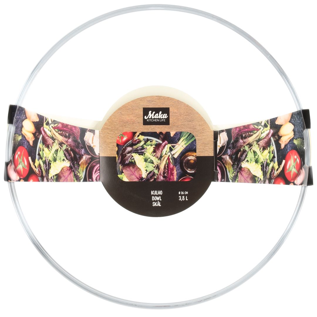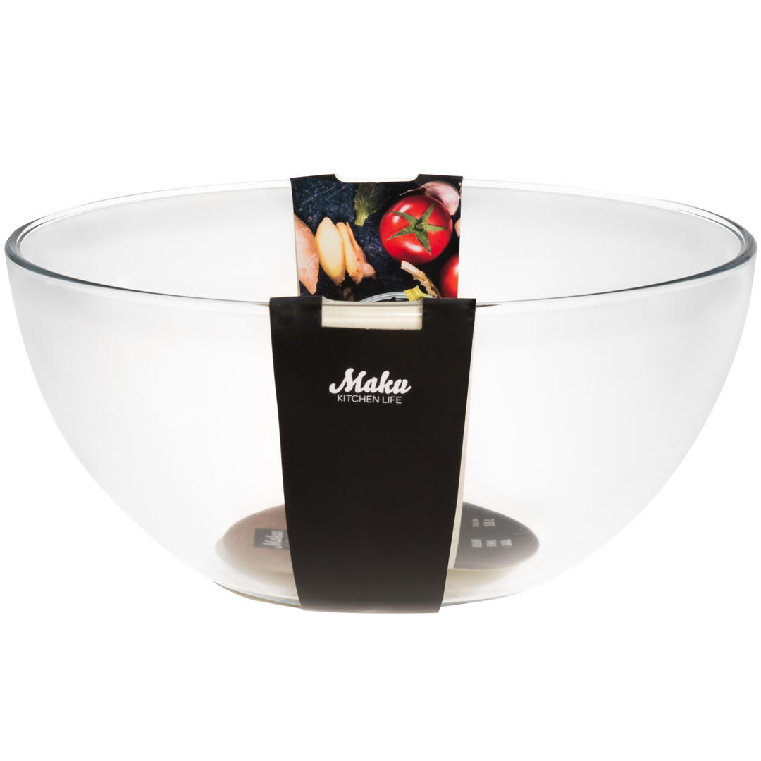 Glassbolle fra Maku. Dimensjoner: 26 cm. Volum: 3,8 liter. Temperaturområde-50 til +500 grader. Oppvask, ovn, mikro og fryser sikker.